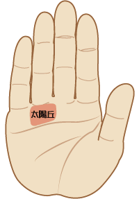 太陽丘は、薬指の下にあるふくらんでいる部分のことで、「成功」「人気」「名声」をあらわし、薬指の下にあるふくらみのことを言います。 この場所が発達していると、社交的で大きな成功を手にするタイプです。